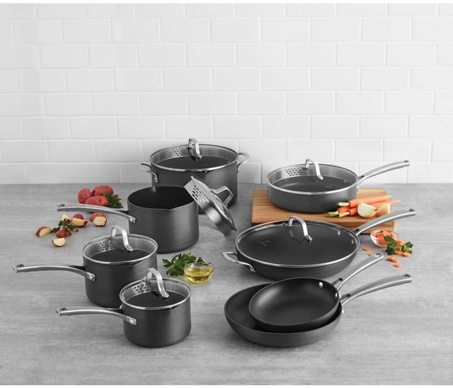 The interior of this kitchen appliance is made of non stick linings that make its cleaning process easy and efficient. Browse our great prices discounts on the best cookware set hard anodized kitchen appliances. Rachael ray brights hard anodized aluminum nonstick cookware set with glass lids 10 piece pot and pan set gray with orange handles 4 6 out of 5 stars 2 834 134 99 134.